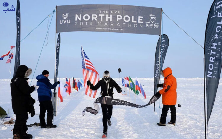 کاملا درست حدس زدید! برخی از مردم روی یک ورقه غول پیکر شناور یخ، مسابقه ماراتن برگزار میکنند. این یخ به اندازه کافی مقاوم است تا بتواند وزن انسان را حفظ کند.