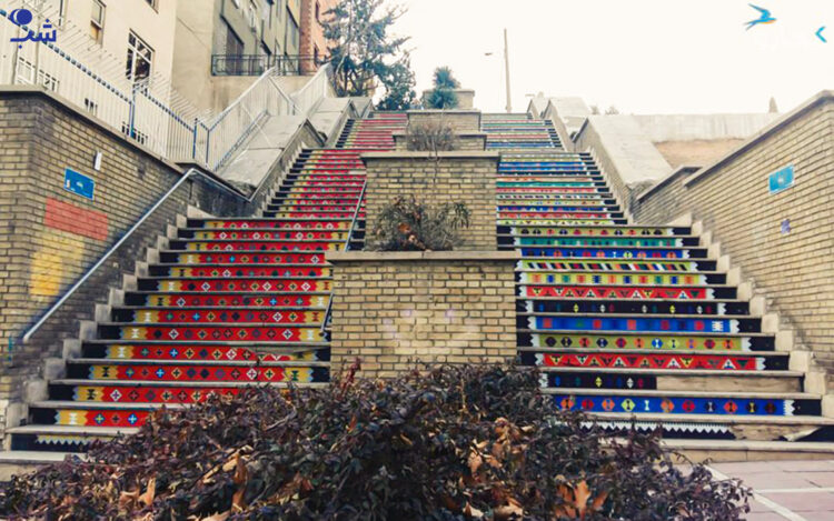یکی از جذابیتهای ساده و دیدنی خیابون ولیعصر پله های رنگیه که مثل کوچه، عابران رو از خیابون ولیعصر به خیابونهای یوسف آباد میرسونه.